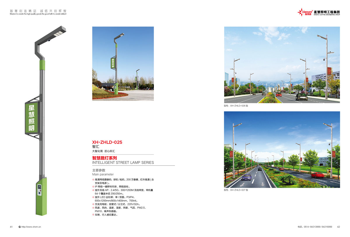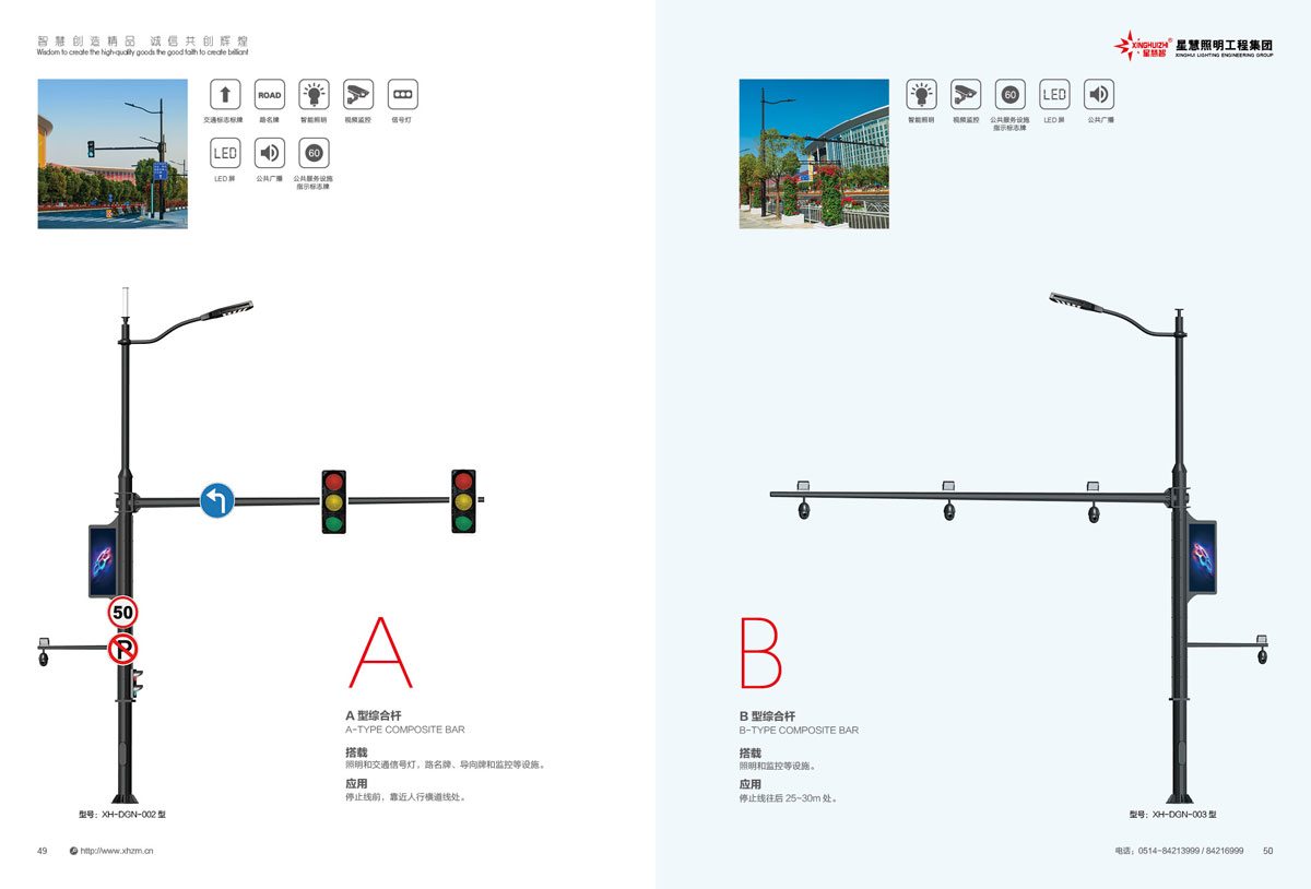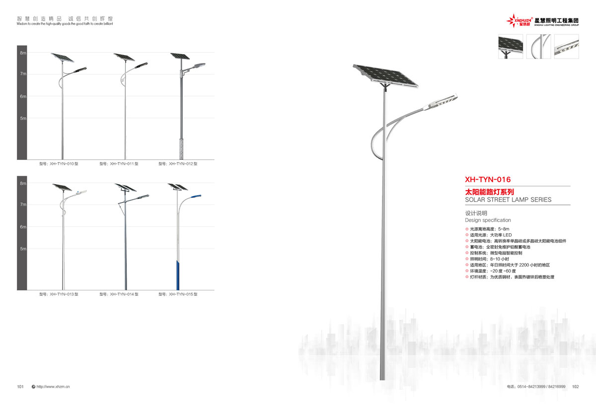 集团公司的产品主要包括:智慧路灯、道路灯、太阳能路灯、高杆灯、LED灯具、电池板组件、单臂灯、双臂灯、组合灯、交通信号灯、电力杆、指示牌、龙门架、景观灯、庭院灯、草坪灯等。公司产品顺利通过国际权威检测机构SGS检测,产品出口美国、苏丹、菲律宾、老挝、越南、坦桑尼亚、阿联酋、以色列等国家。
