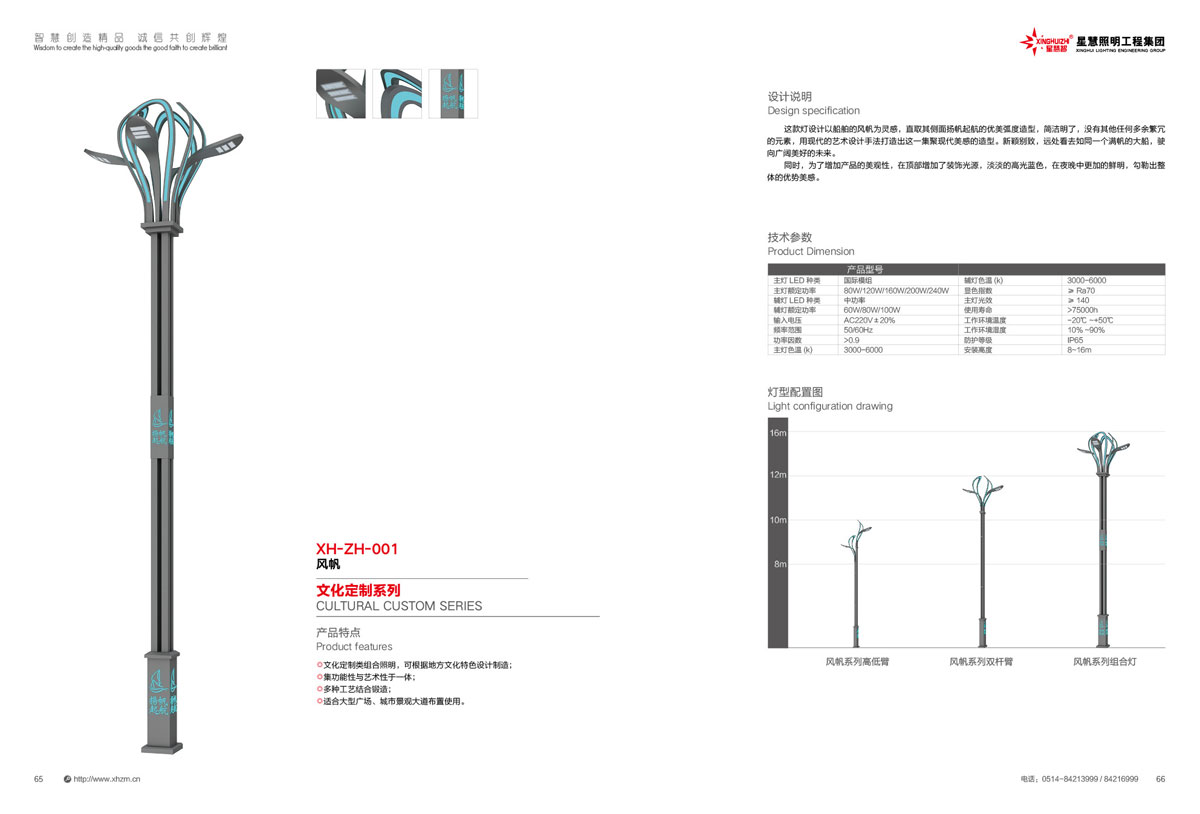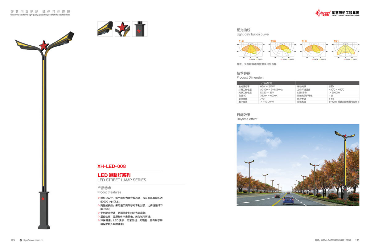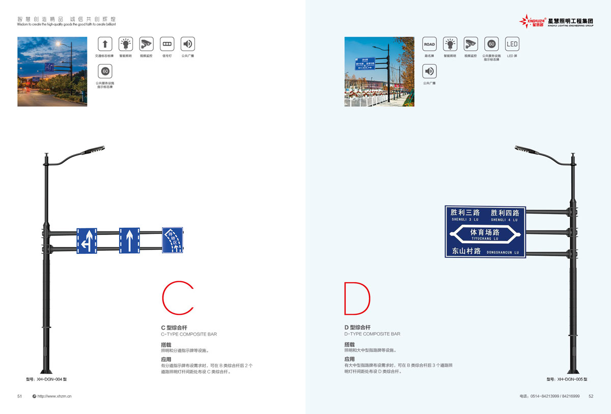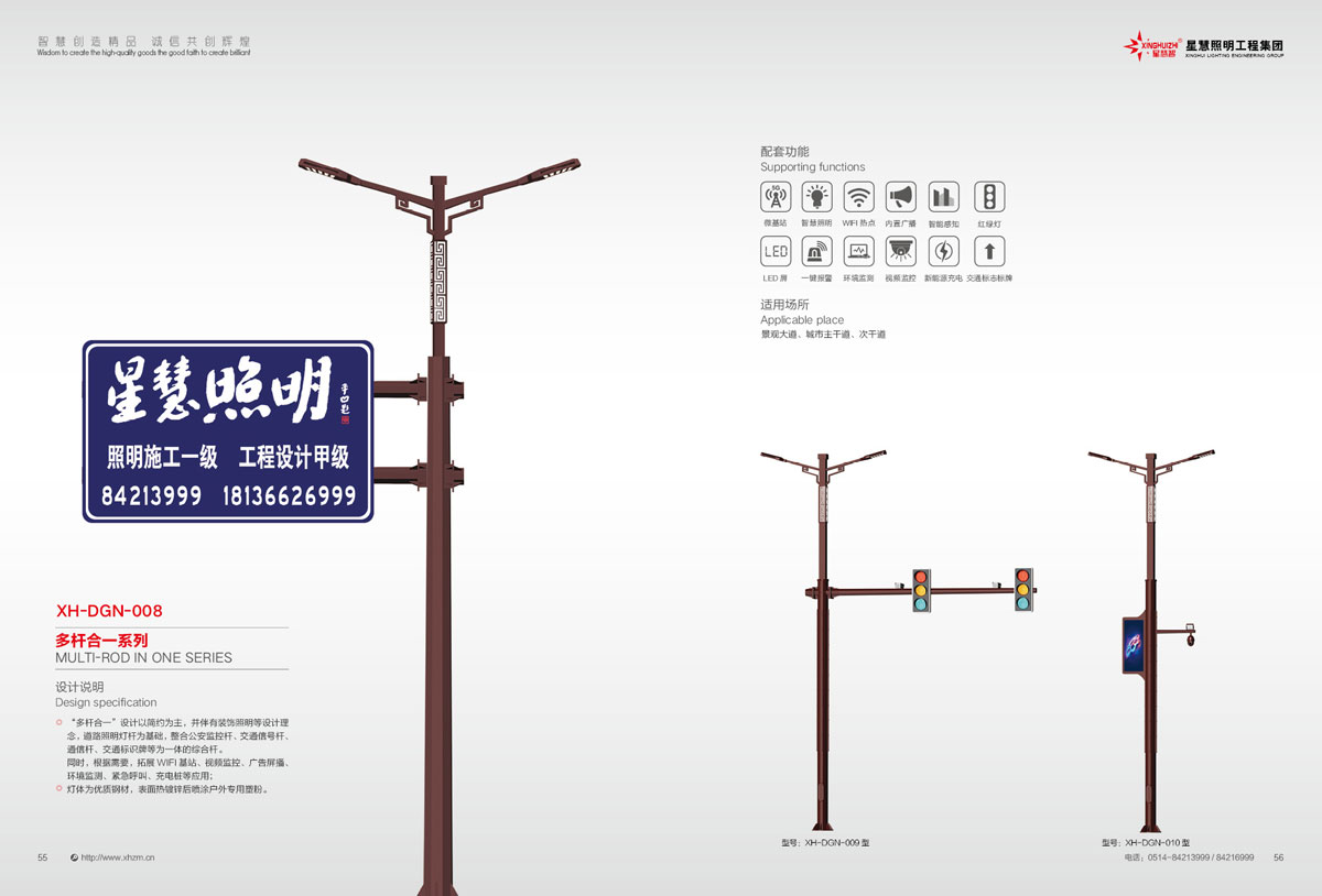 集团公司的产品主要包括:智慧路灯、道路灯、太阳能路灯、高杆灯、LED灯具、电池板组件、单臂灯、双臂灯、组合灯、交通信号灯、电力杆、指示牌、龙门架、景观灯、庭院灯、草坪灯等。公司产品顺利通过国际权威检测机构SGS检测,产品出口美国、苏丹、菲律宾、老挝、越南、坦桑尼亚、阿联酋、以色列等国家。