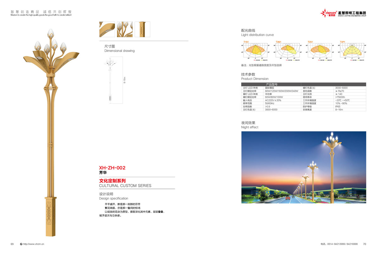 星慧照明工程集团有限公司座落在中国路灯制造基地:江苏省高邮市送桥镇工业集中区。公司成立于1999年,注册资金1.0058亿元,厂区占地8万多平方米,建筑面积6.5万多平方米,主要下辖三大功能生产厂区和两处商务运营中心及集团行政总部,是一家集科研、设计、生产、销售、施工服务为一体的大型户外照明产品制造商和集成运营商。