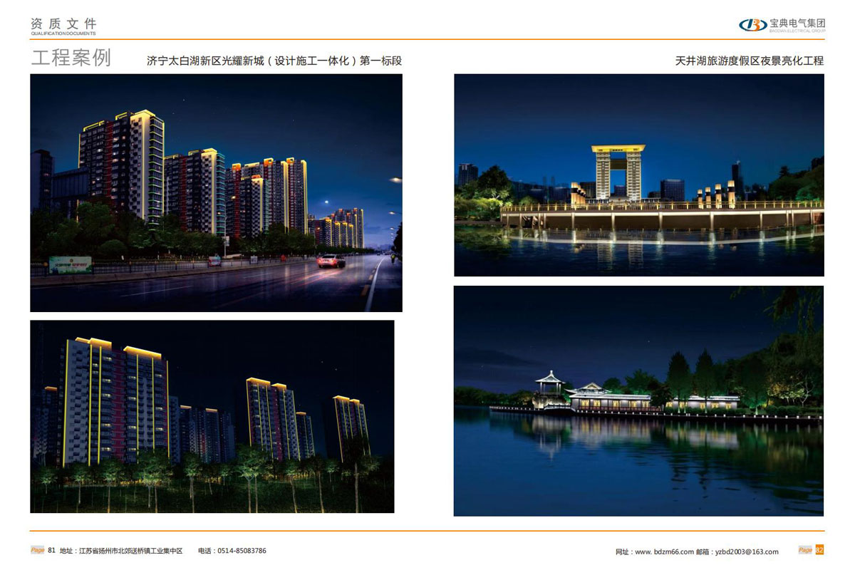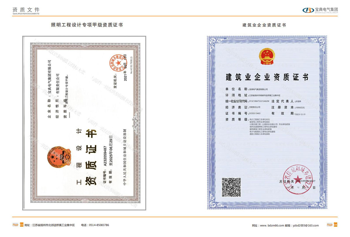 集团成立近20年,具有照明工程设计专项甲级、道路照明安装资质一级、电子与智能化专业承包一级、安防设计施工维护一级、景观工程总承包一级、电力、通信、机电、市政、交安钢结构及环保等十多项资质,通过ISO9001、ISO14001、T28001、CQC、CE、3C、节能认证、金太阳认证、售后服务认证,重合同守信用单位、三A资信单位、江苏省著名商标和江苏省建筑灯具推荐品牌,是全国首部标准《文旅景观设计导则规范》的参编单位之一。