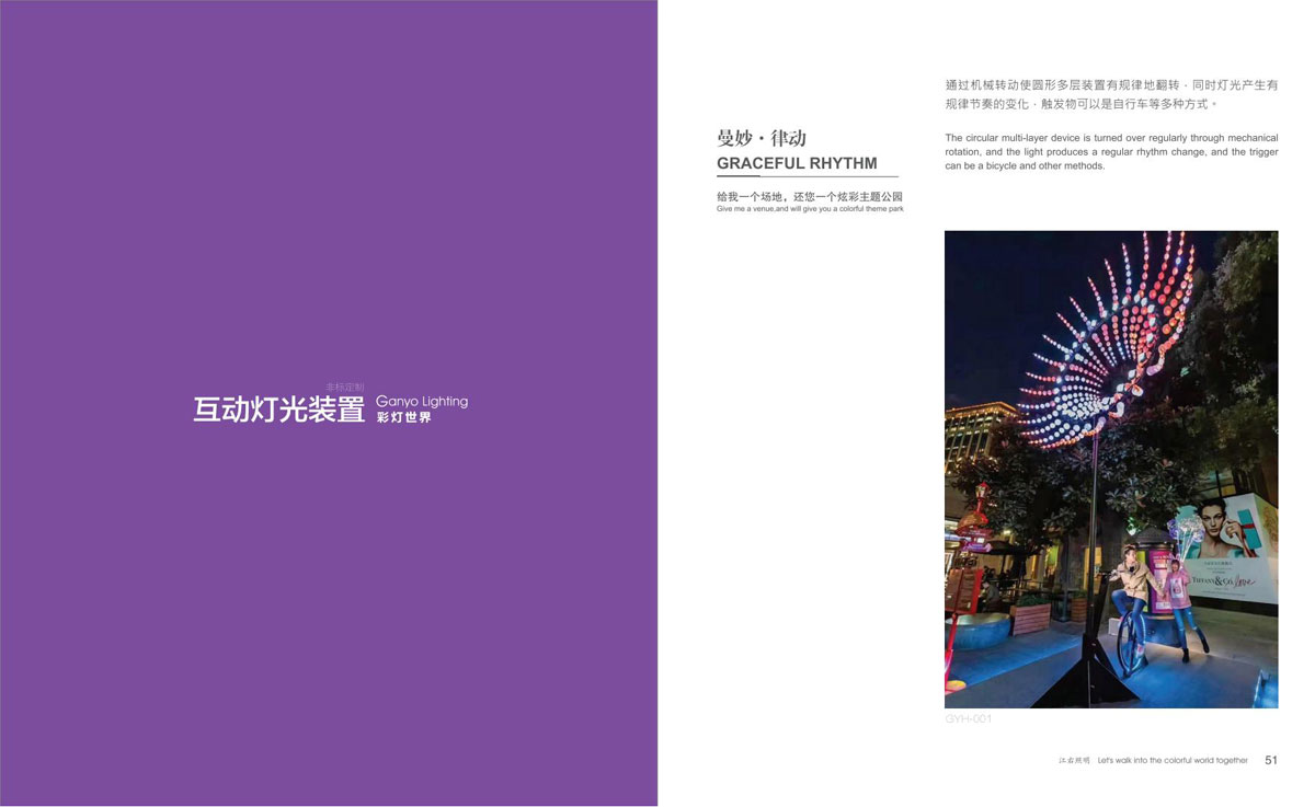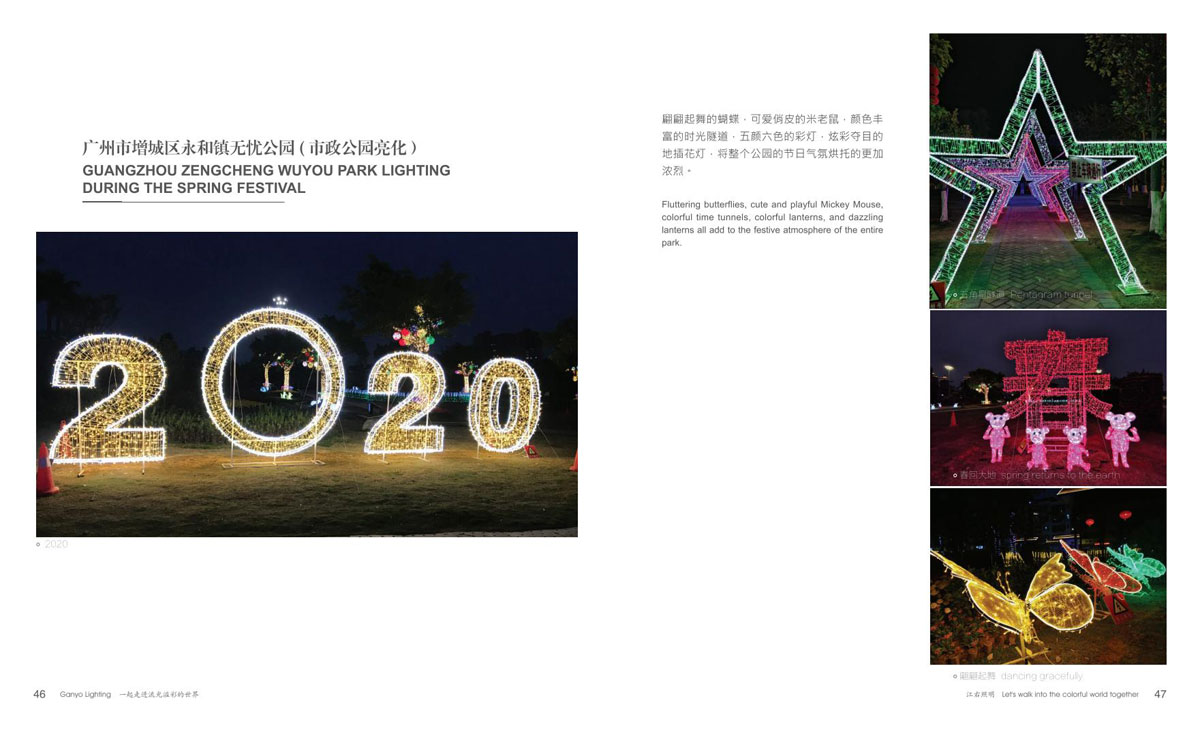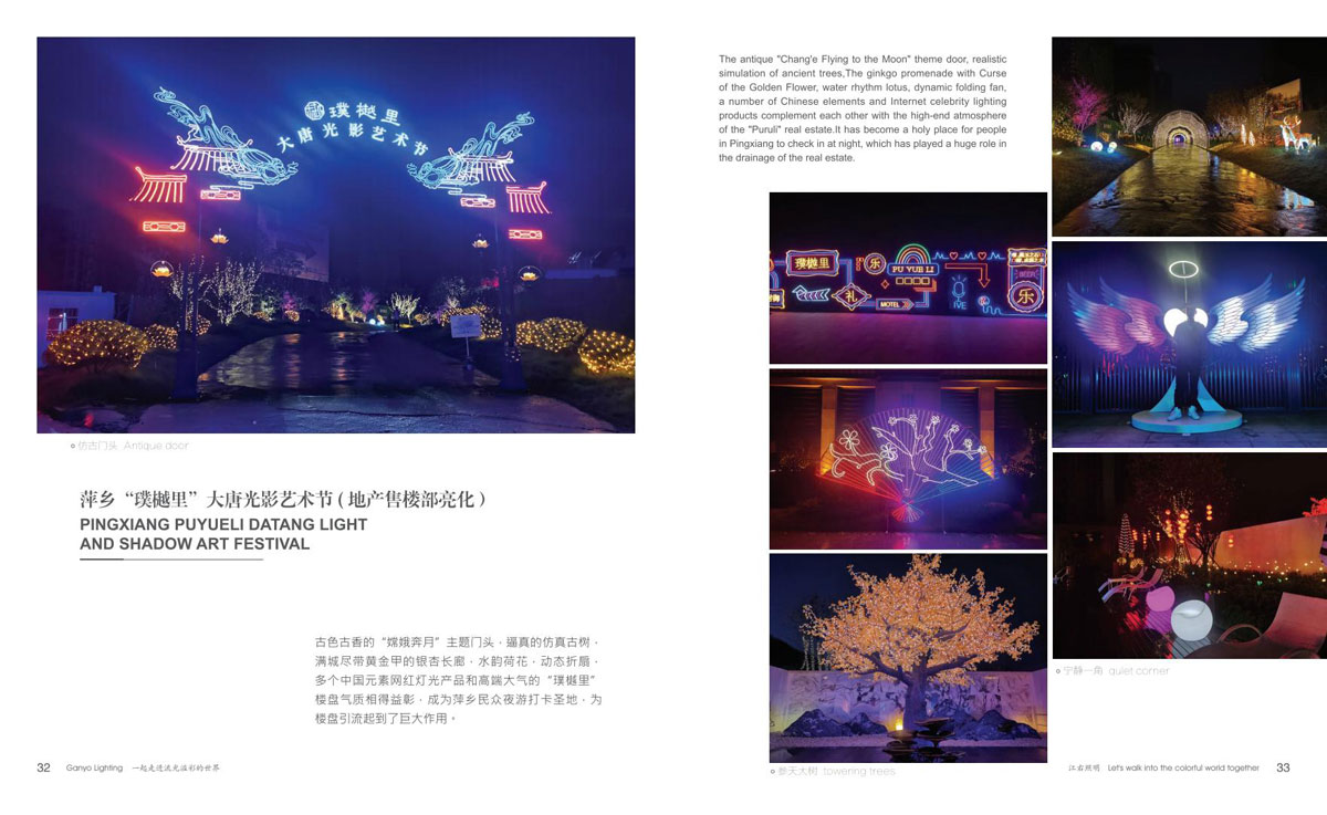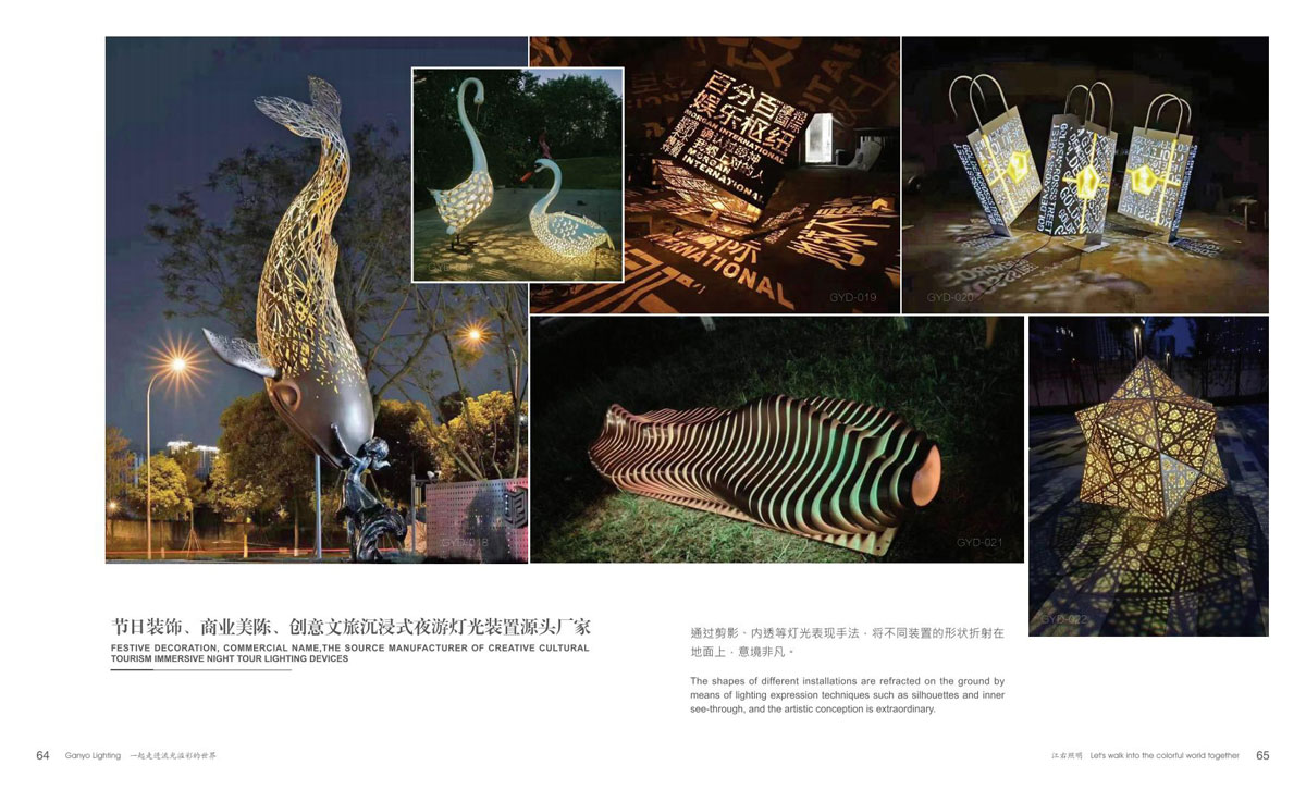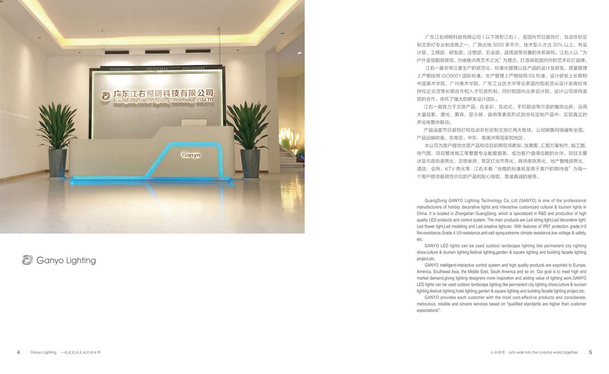 广东江右照明科技有限公司(以下简称江右),是国内节日装饰灯、动非标定制文旅灯专业制造商之一,厂房占地 3000 多平方,技术型人才占 30% 以上,有设计部、工程部、研发部、注塑部、五金部、品质部等完善的体系架构。江右人以“为户外呈现靓丽景观,为夜晚点亮艺术之光”为理念,打造闻名国内外的艺术彩灯品牌。