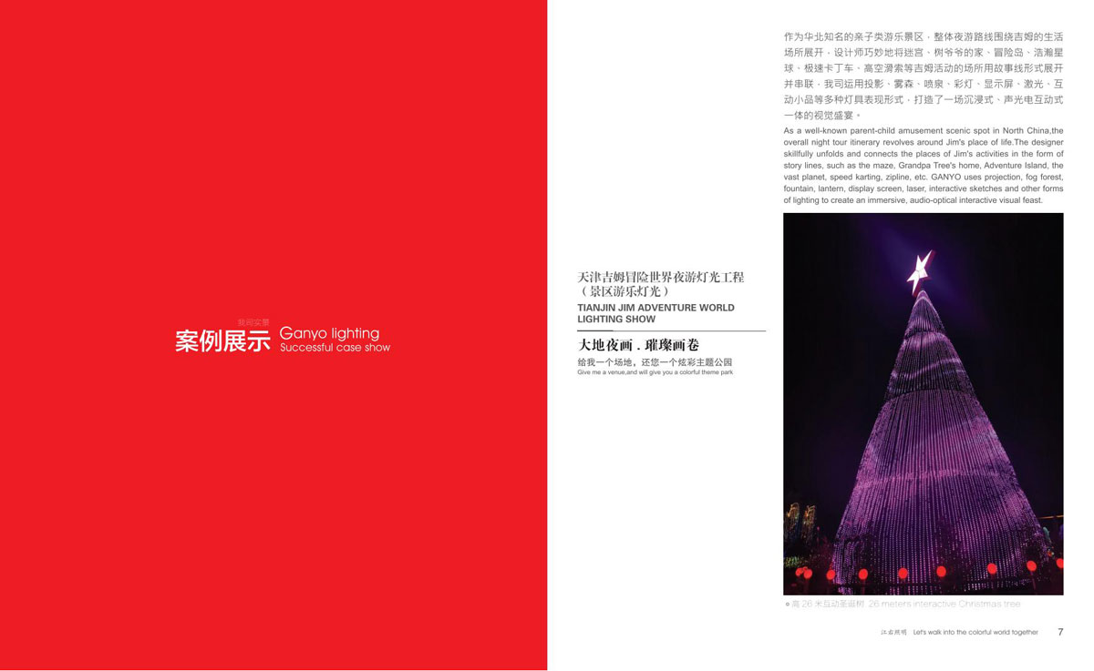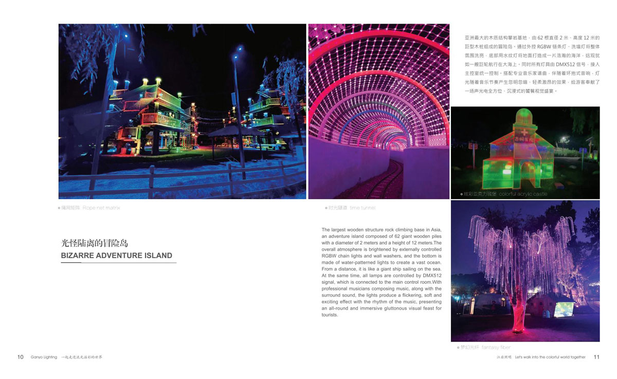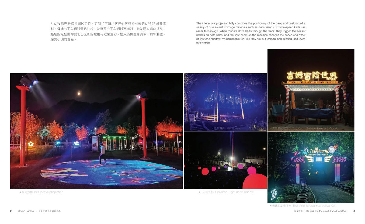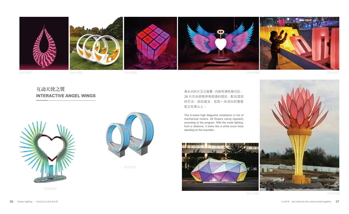 同时和国内众多设计院、设计公司保持紧密的合作,依托了强大的研发设计团队。江右一直致力于文旅产品,在全彩、互动式、手机联动等方面的推陈出新,运用大量投影、激光、雾森、显示屏、音响等表现形式到非标定制产品中,实现真正的声光电整体联动。产品涵盖节日装饰灯和互动非标定制文旅灯两大板块,公司销售网络遍布全国,产品远销欧美、东南亚、中东、南美洲等国家和地区。