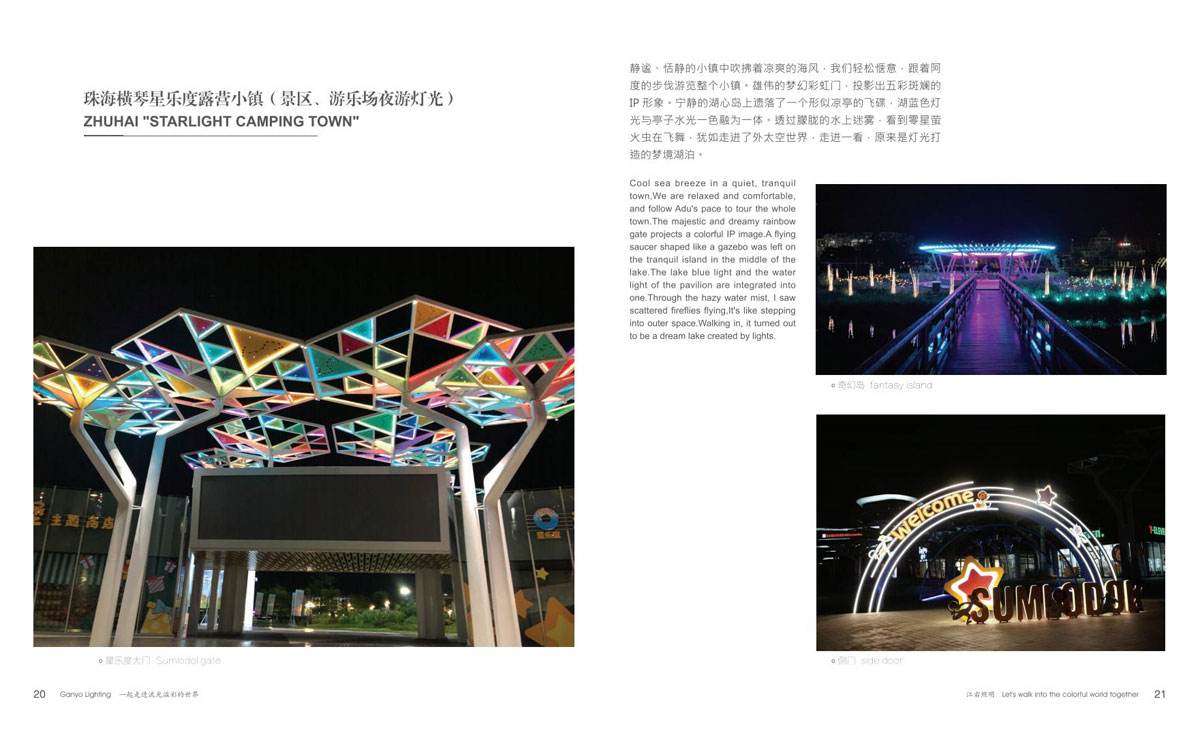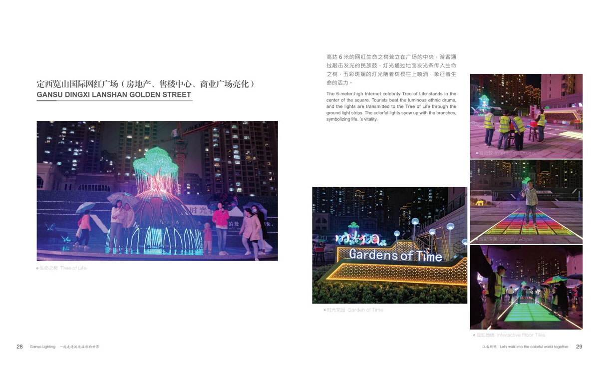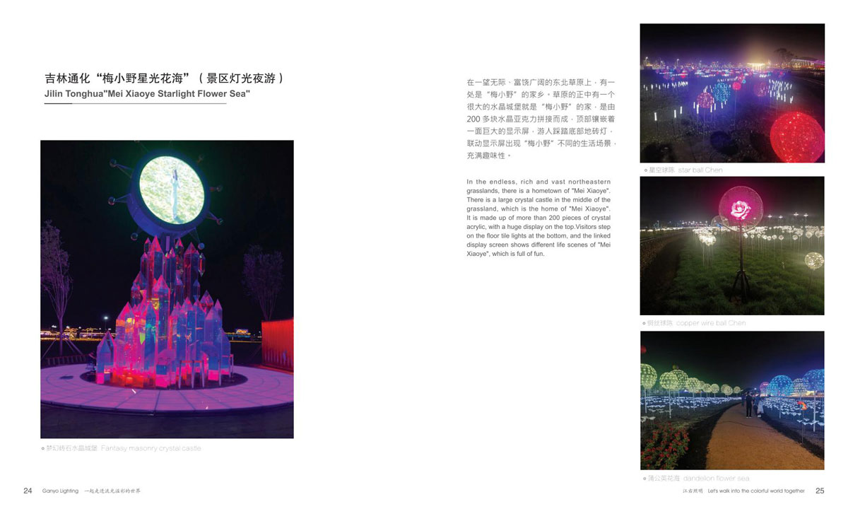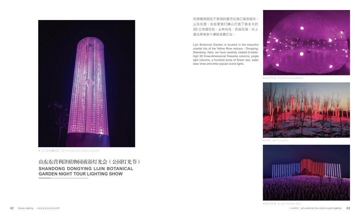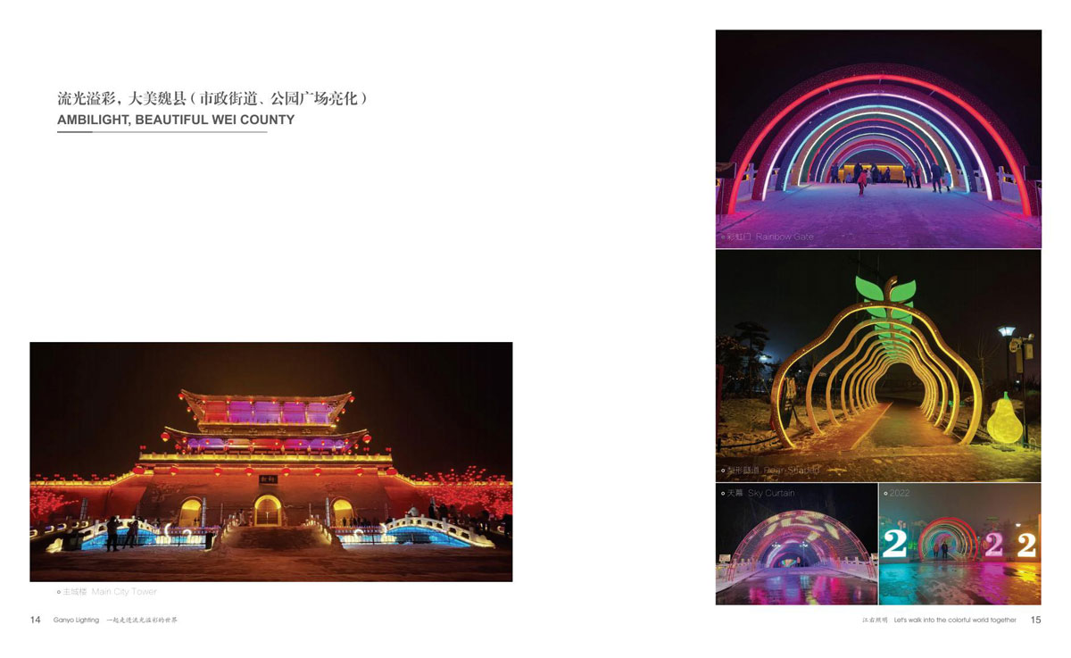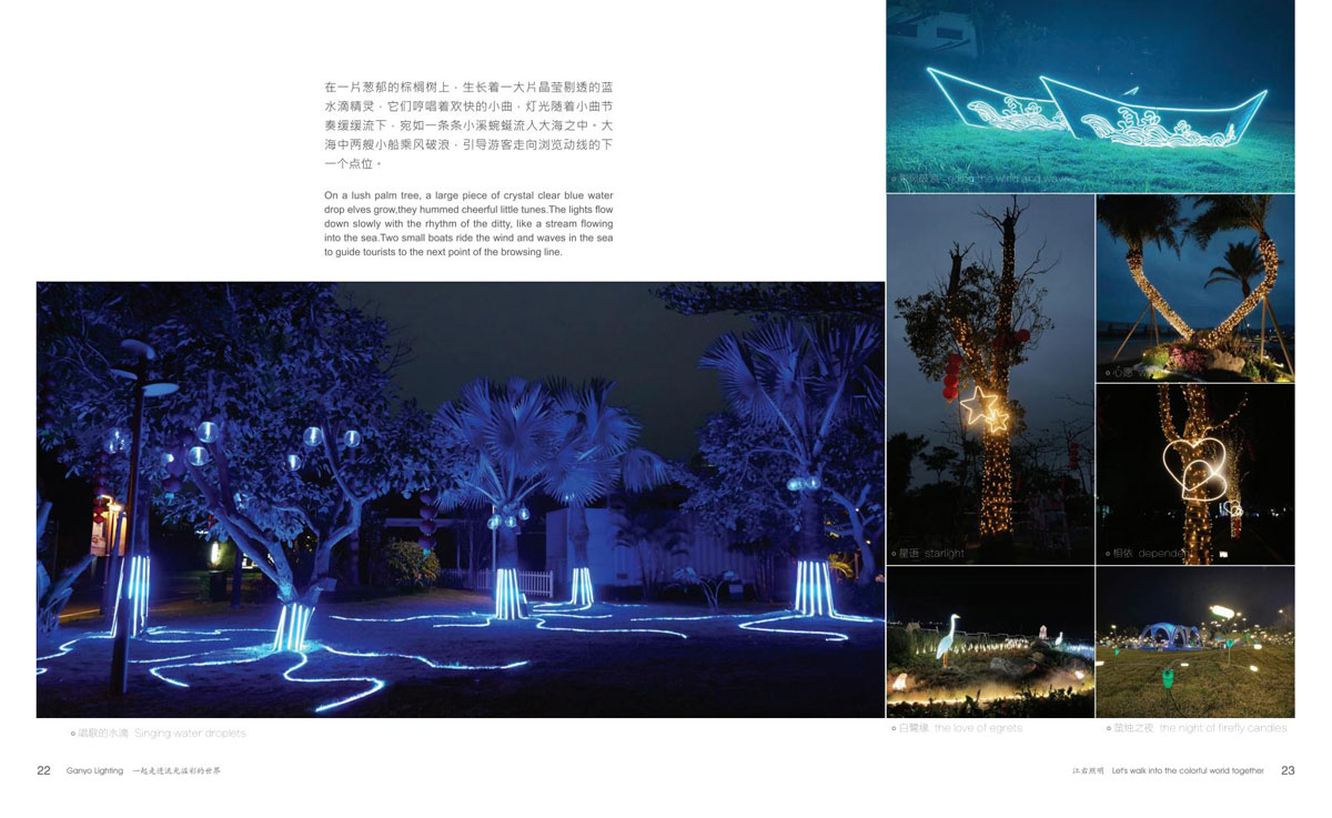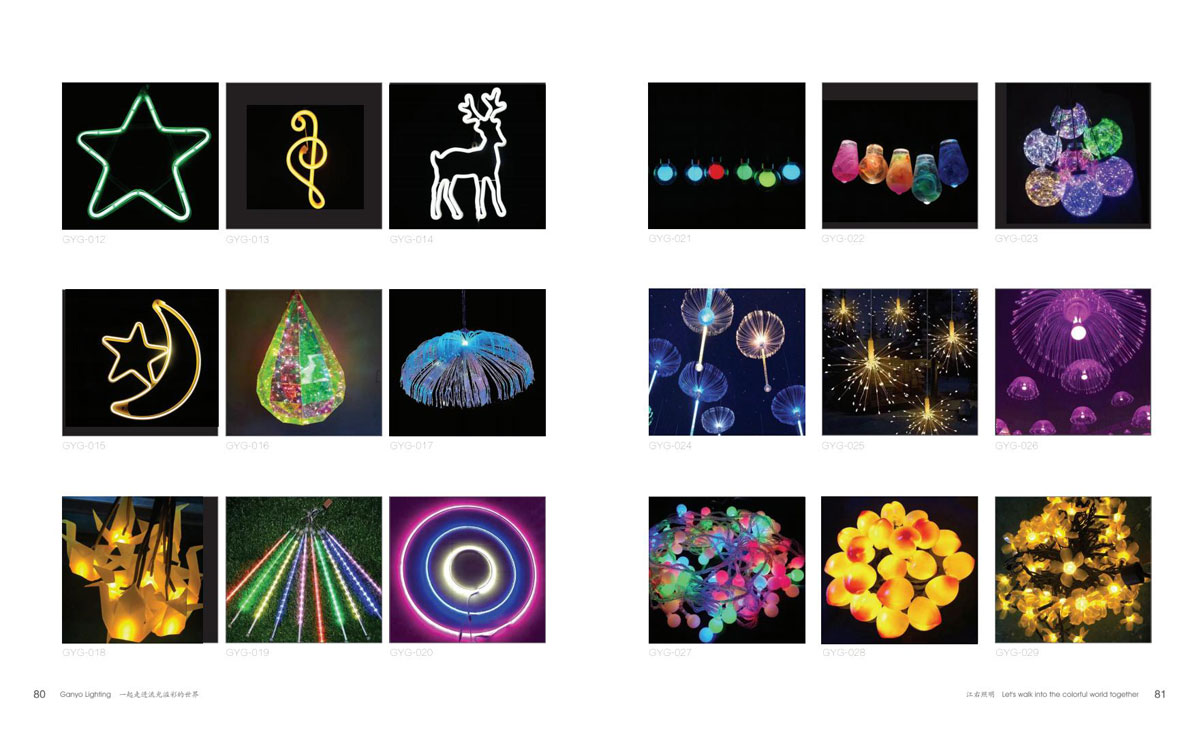 本公司为客户提供优质产品和项目前期现场勘察、效果图、汇报方案制作、施工图电气图、项日整体施工等整套专业配套服务,成为客户值得信赖的伙伴。项目主要涉及市政街道亮化、文旅夜游、景区灯光节亮化、商场美陈亮化、地产售楼部亮化、酒店、会所、KTV亮化等,江右本着“合格的标准就是高于客户的期待值”为每-个客户提供最具性价比的产品和贴心细致、靠谱真诚的服务。