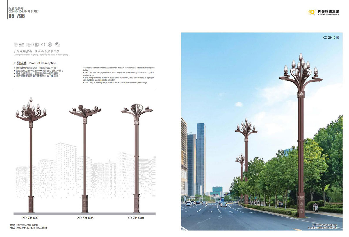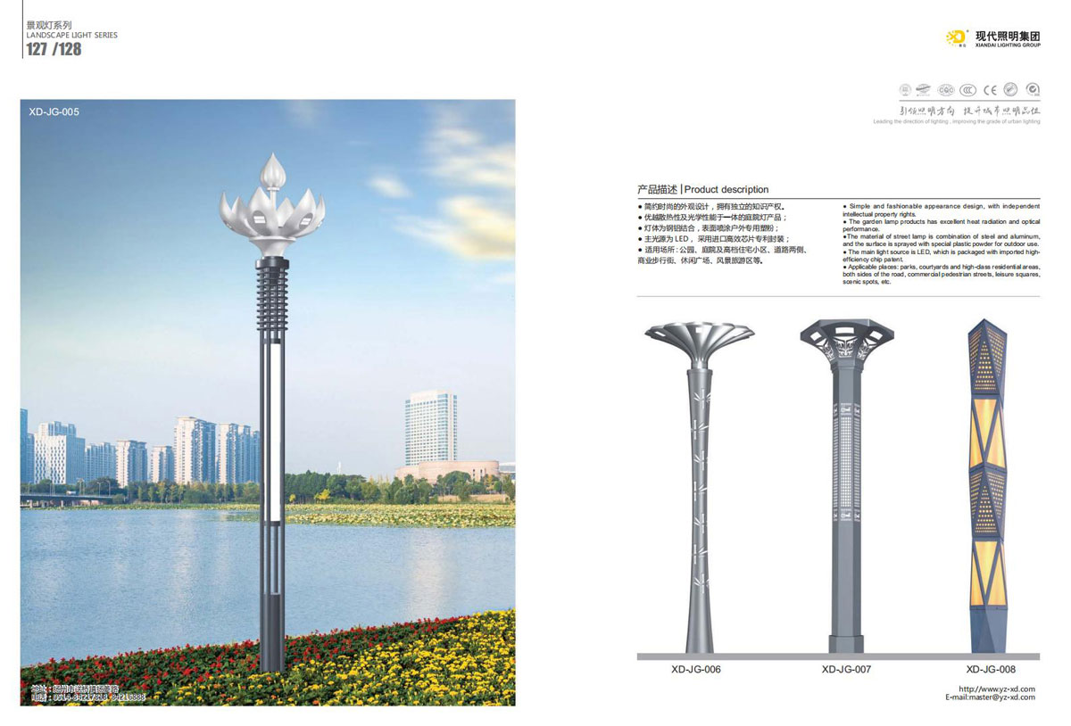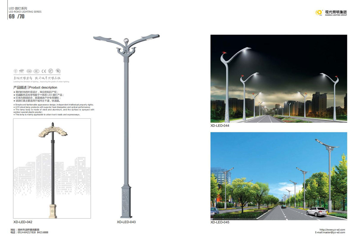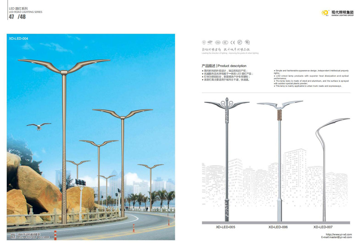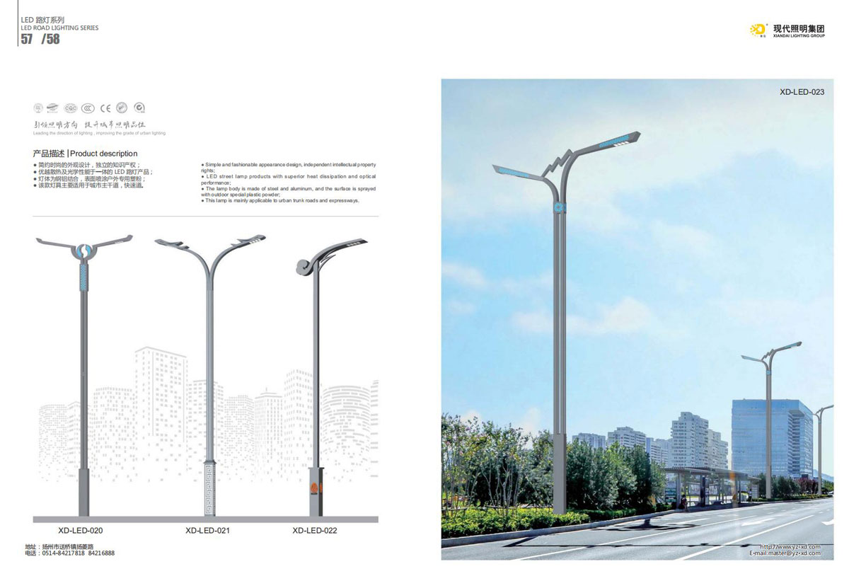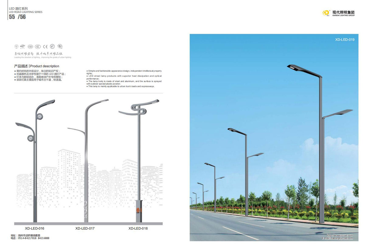 公司集户外照明产品研发、制造、营销、安装于一体,产品涉及道路照明灯具、灯杆、中高杆灯、景观灯、庭院灯、草坪灯、LED新光源、太阳能光伏组件、太阳能路灯、景观亮化、电力杆、通信塔等多个系列近千品种。公司连续多年被工商行政管理局评为“重合同、守信用企业”、连年被江苏省国际咨询评估公司评为“AAA”级资信企业、率先通过了ISO9001:2008国际质量体系认证,ISO:14001/18000国际环境体系认证,太阳能路灯产品获金太阳产品认证,并通过SGS、RASO、CE认证。获江苏省名牌产品、江苏省著名商标、江苏省可再生能源协会副理事单位、扬州路灯商会副理事单位。