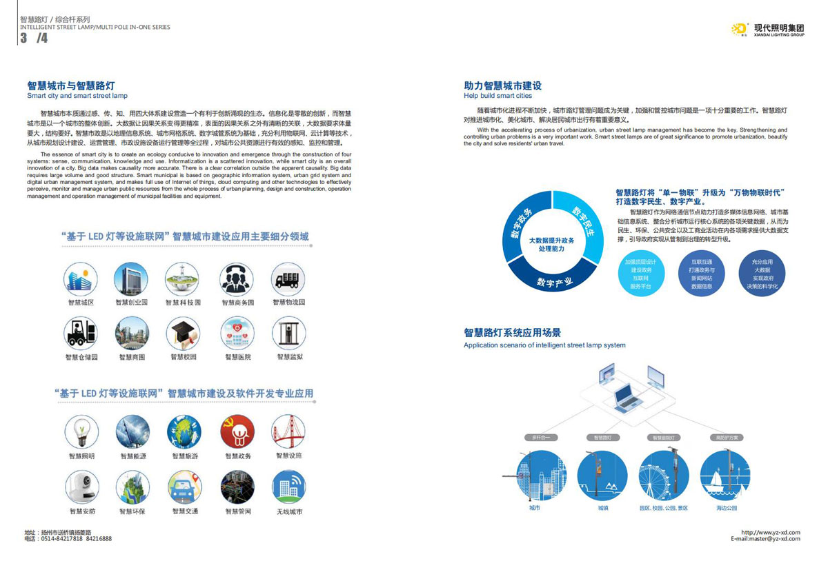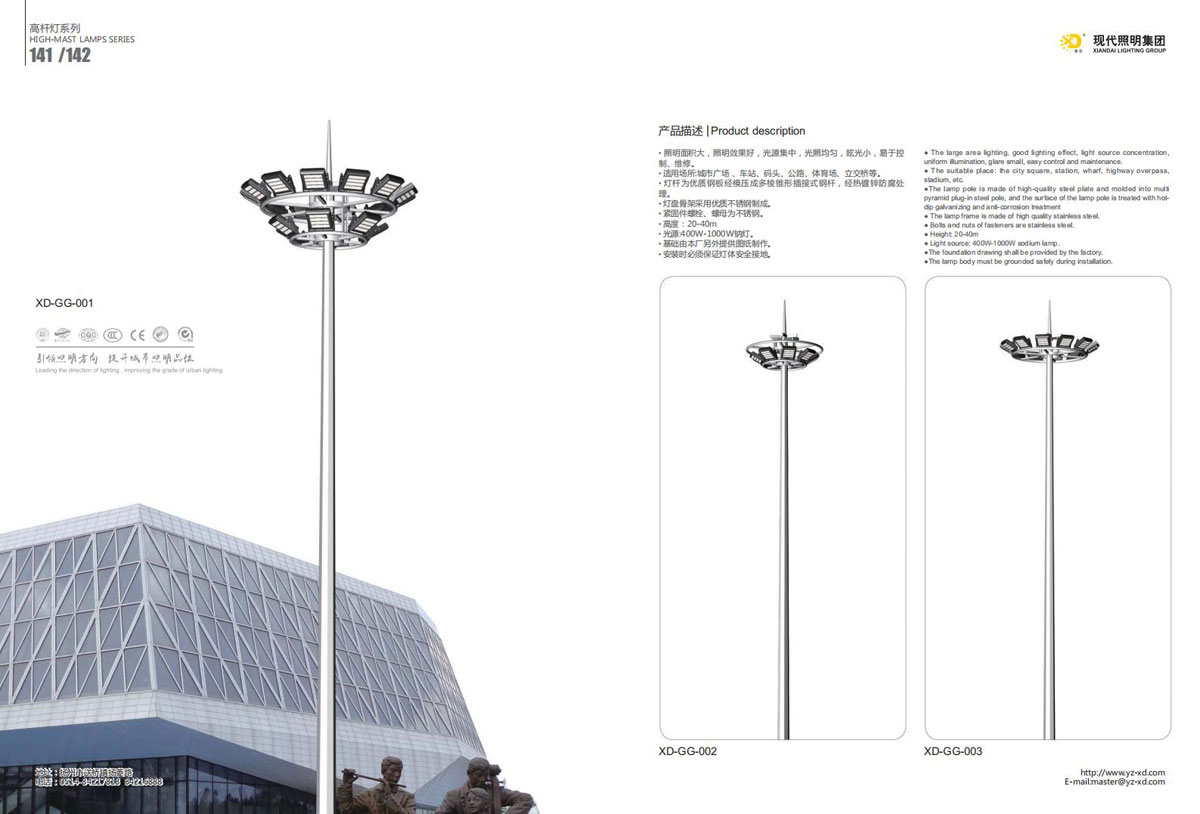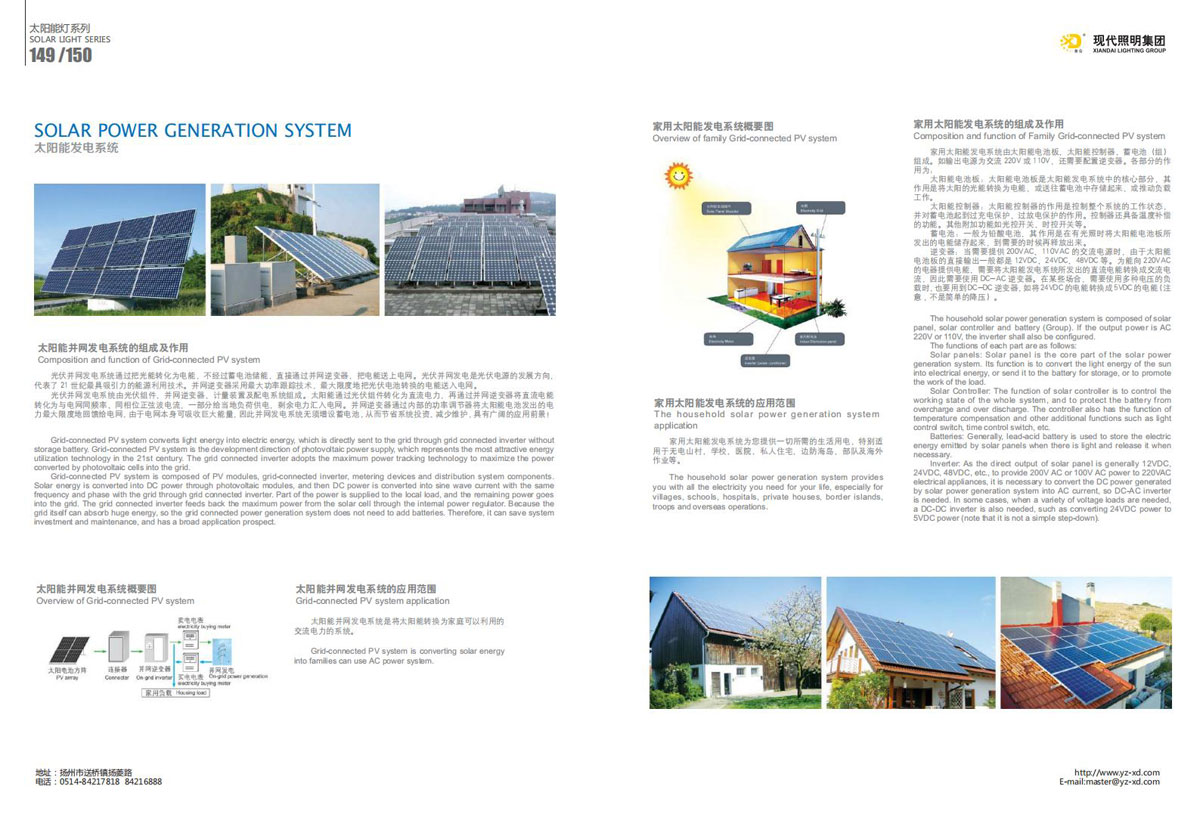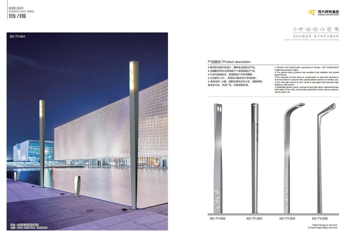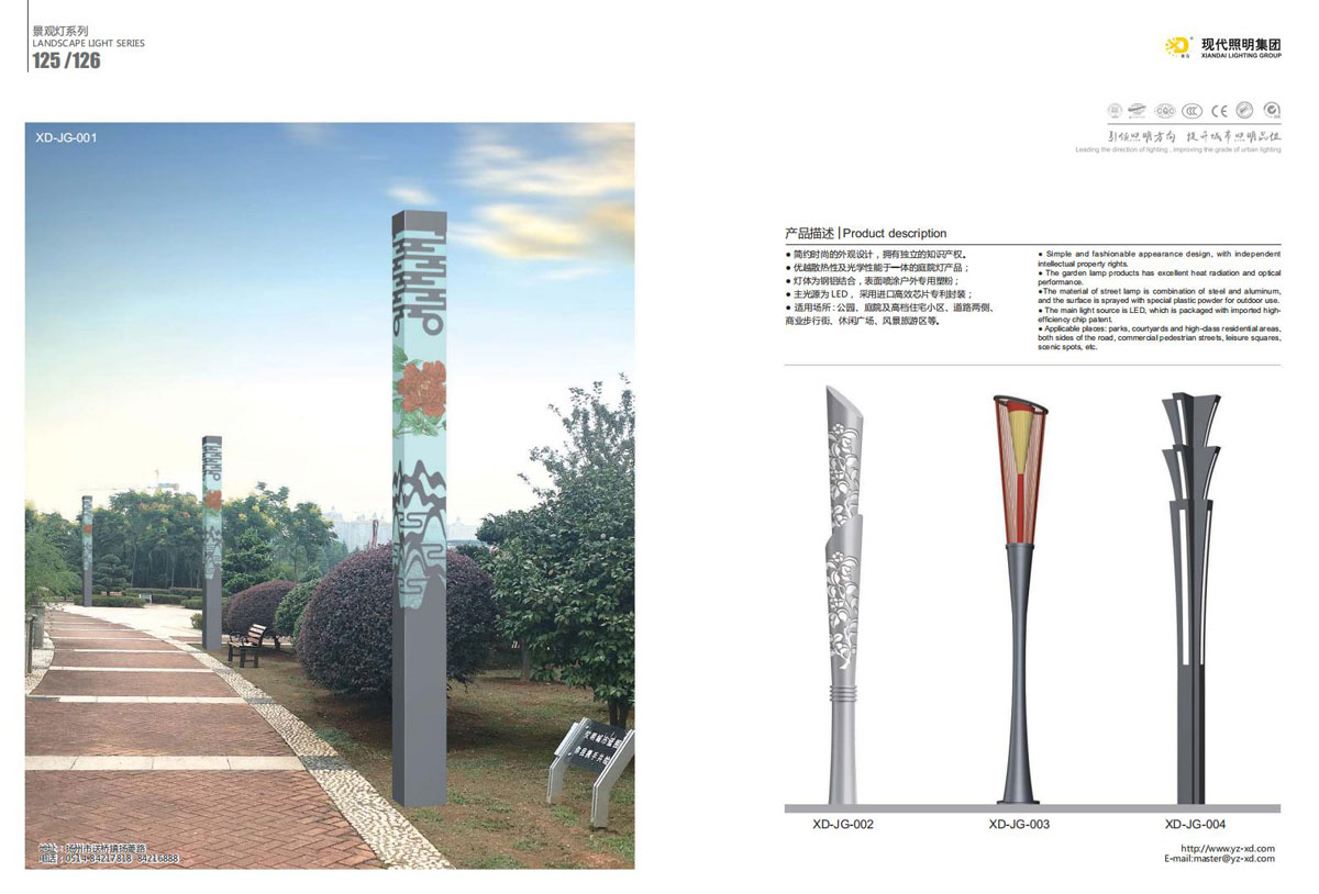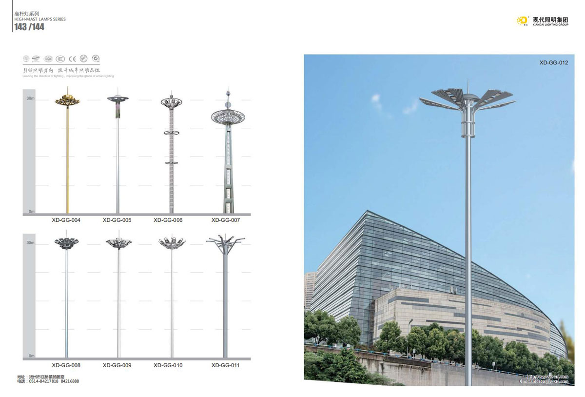公司集户外照明产品研发、制造、营销、安装于一体,产品涉及道路照明灯具、灯杆、中高杆灯、景观灯、庭院灯、草坪灯、LED新光源、太阳能光伏组件、太阳能路灯、景观亮化、电力杆、通信塔等多个系列近千品种。公司连续多年被工商行政管理局评为“重合同、守信用企业”、连年被江苏省国际咨询评估公司评为“AAA”级资信企业、率先通过了ISO9001:2008国际质量体系认证,ISO:14001/18000国际环境体系认证,太阳能路灯产品获金太阳产品认证,并通过SGS、RASO、CE认证。获江苏省名牌产品、江苏省著名商标、江苏省可再生能源协会副理事单位、扬州路灯商会副理事单位。