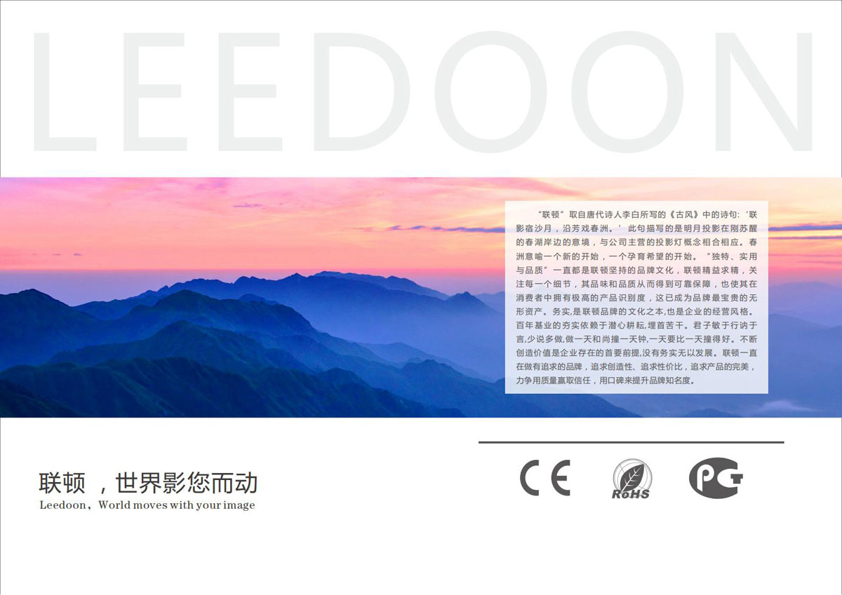中山市联顿光电科技有限公司,是一家专业于生产、研发、销售广告投影类产品和设备的综合型科技企业。目前公司主打有广告LOGO投影灯、氛围投影灯、3D扇屏投影灯以及智能投影等四大类产品。尤其是智能投影类产品中的互动投影、智能电梯广告机、共享橱窗广告机以及3D全息氛围场景设备,在同行业中具有技术研发和实际应用领先优势。因公司在产品技术上的研发和实际应用转换取得的不菲成果,于2018年正式认定为国家高新技术企业。公司目前有投影设备类产品发明专利一项,实用新型专利十一项,外观专利六项,尤其是专利:一种静止镜片和旋转镜片相重叠产生特殊效果的投影灯,通过了国家PCT专利认证并进入了国际认证阶段,这意味着联顿公司是目前全球唯-一家在广告投影灯领域里掌握多镜片重叠控制模式的公司。