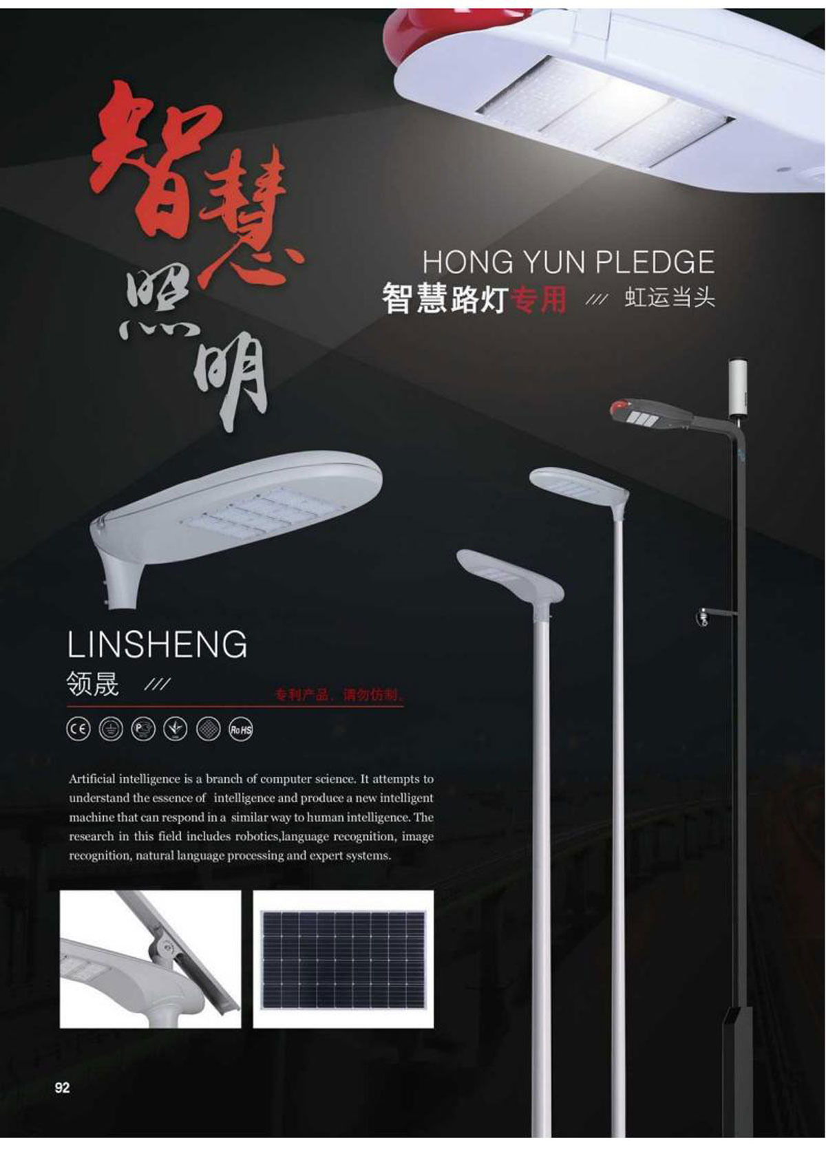 本公司始建于2011年,现有大型灯杆折弯生产线,LED生产线,太阳能板光伏生产线,以及异型灯杆用数控切割设备,同时公司今年新增智慧城市项目,广泛应用于道路、广场、公园、小区等照明、亮化、监控、充电桩、环境测试仪、空气监测仪气象仪等产品的智能控制、巡查、数据采集、节能控制,使用评判等一系列自动化系统的规划、设计、施工和维护。