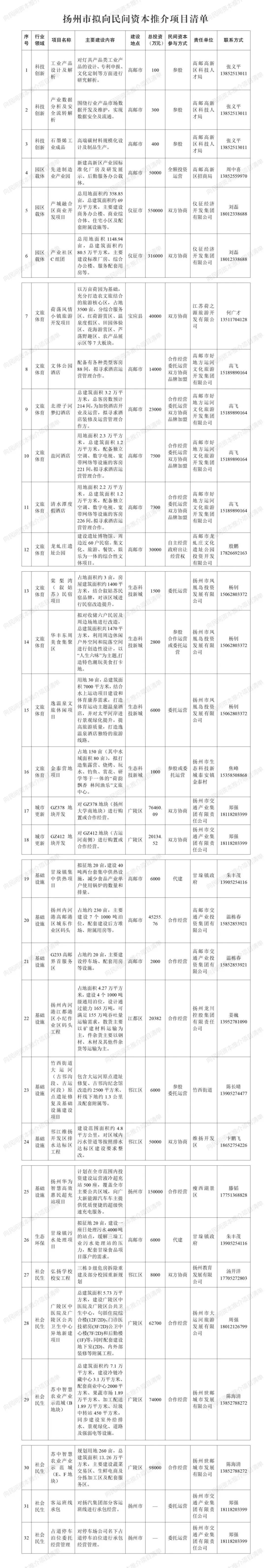 为贯彻落实国家和省发展改革委工作部署,进一步放宽市场准入,持续增强民间投资意愿和能力,努力调动民间投资积极性,推动民间投资高质量发展,近日,扬州市发改委梳理筛选了一批投资回报机制明确、适合向民间资本推介的项目,共计32个、总投资167.48亿元。