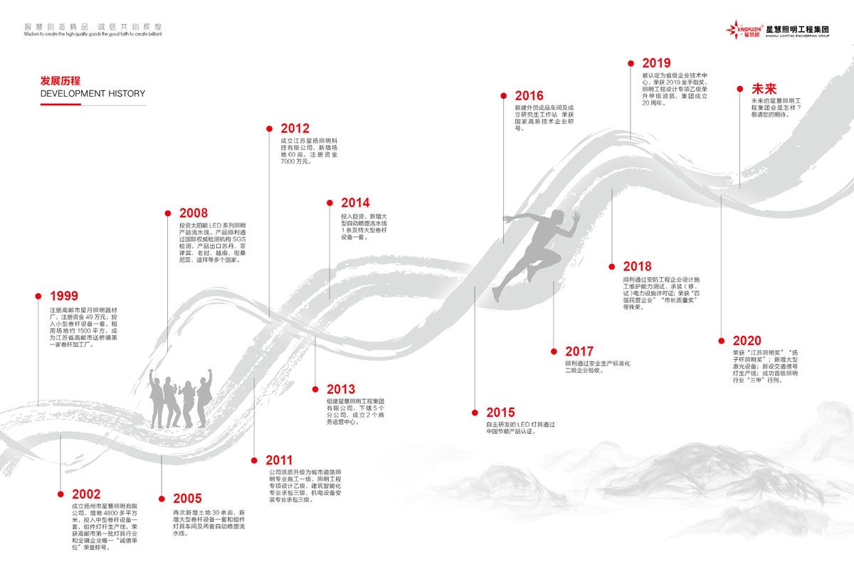 “明礼诚信、团结友善、勤俭自强、敬业奉献”是星慧集团发展的核心价值观;星慧人以“质量第一、信誉第一、用户至上”为发展的宗旨;以“没有做不到、只有想不到、想到必做到、做到不骄傲”的企业精神为用户提供一流的产品、一流的服务。我们的愿景是成为中国照明行业百年企业,热忱欢迎您的加盟与合作,共同为中国的城乡亮化事业增光添彩,实现我们共同的“星慧梦”:有路、有灯、有星慧!