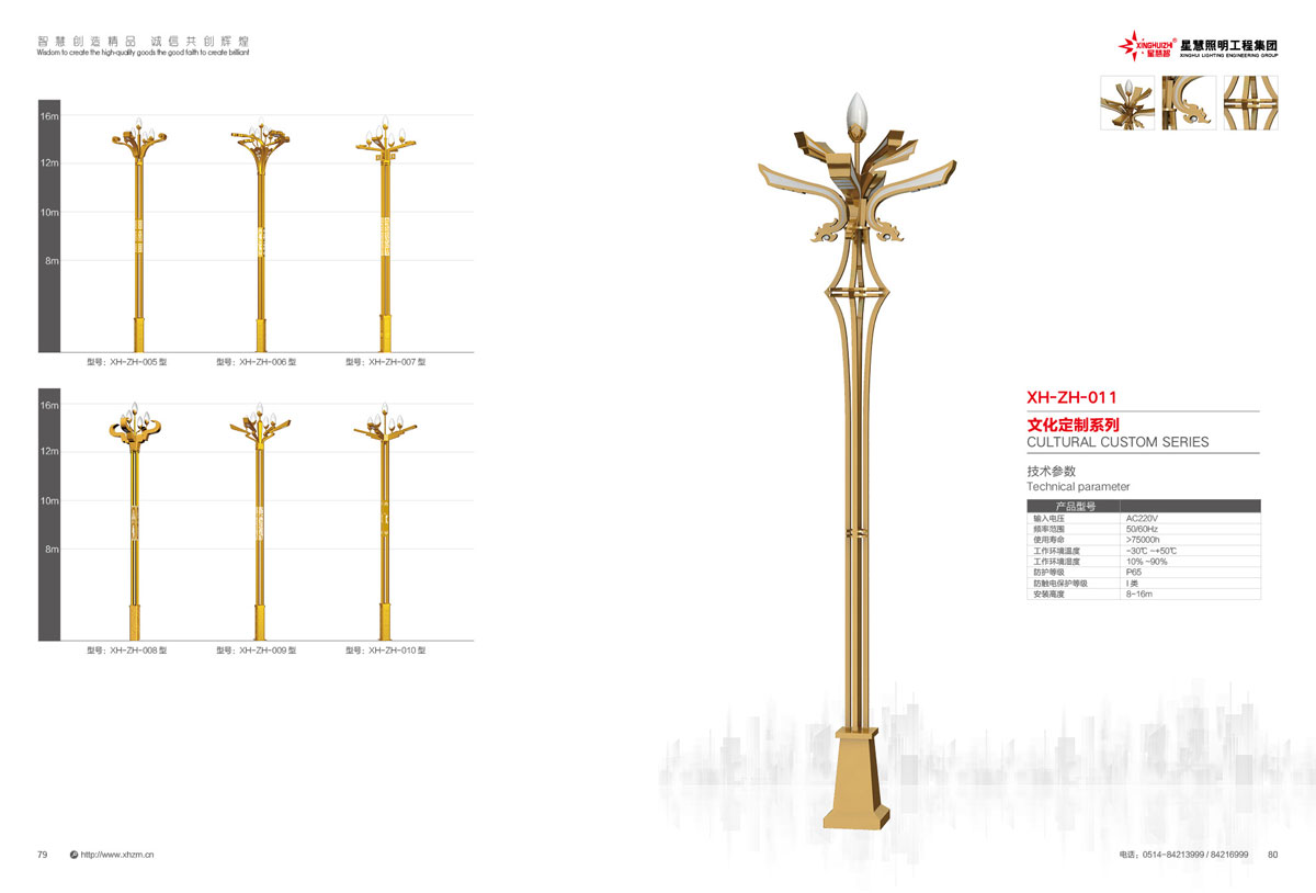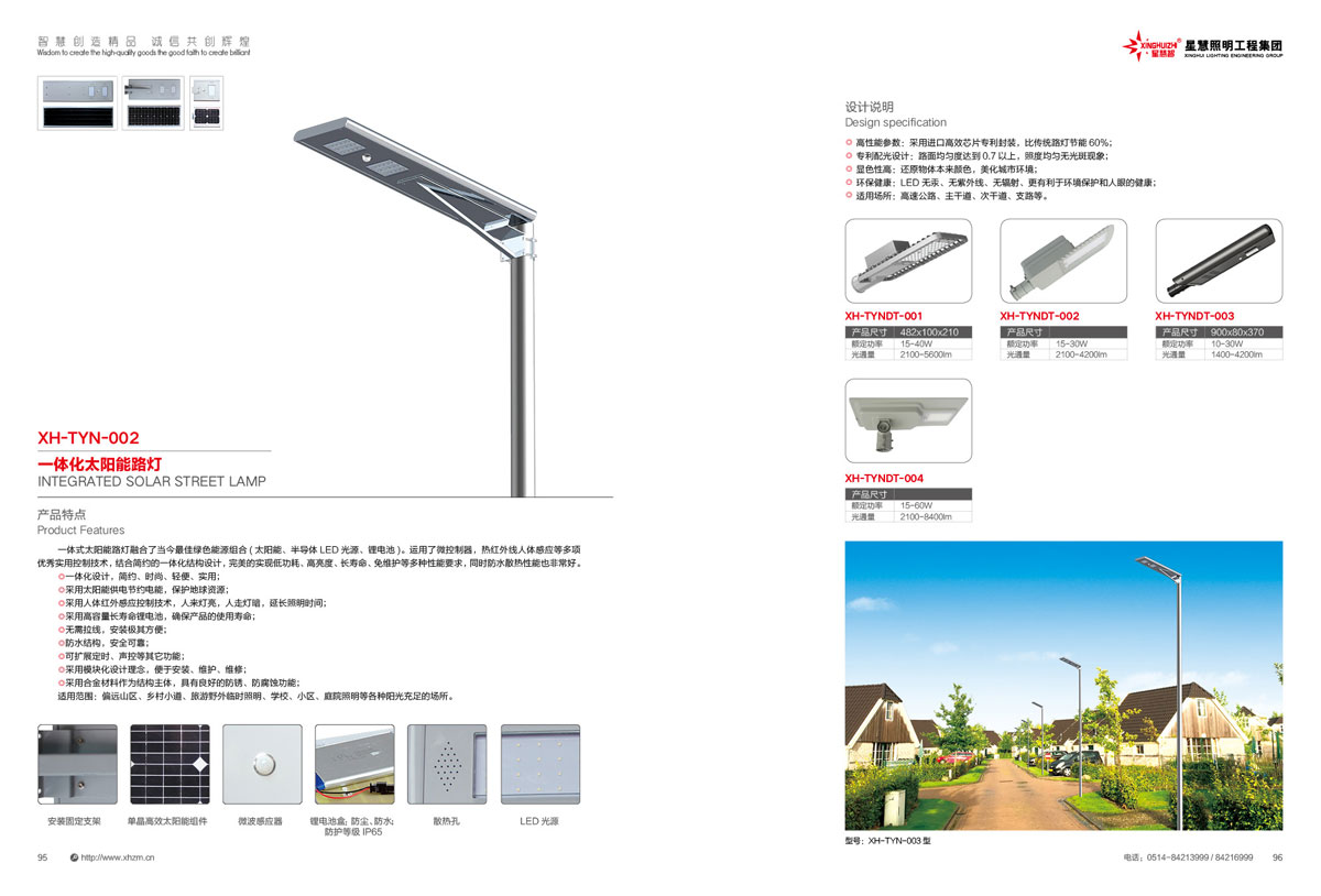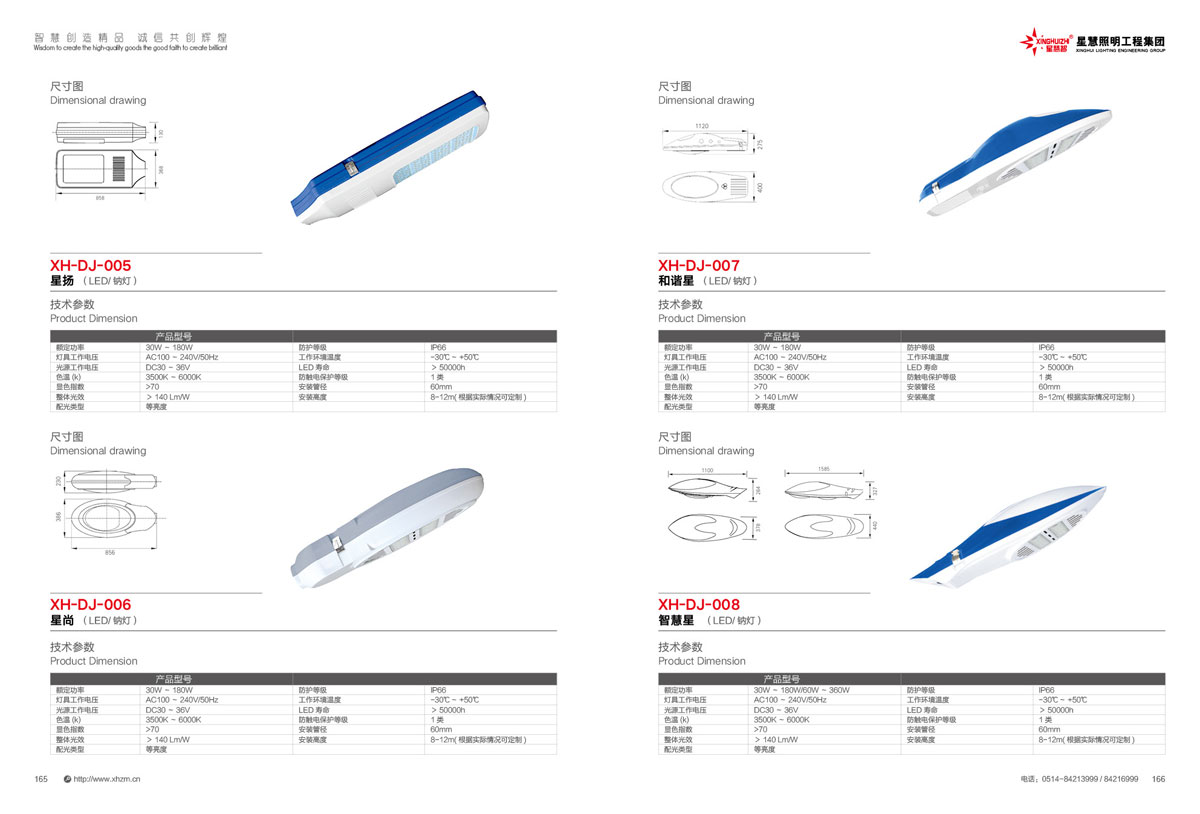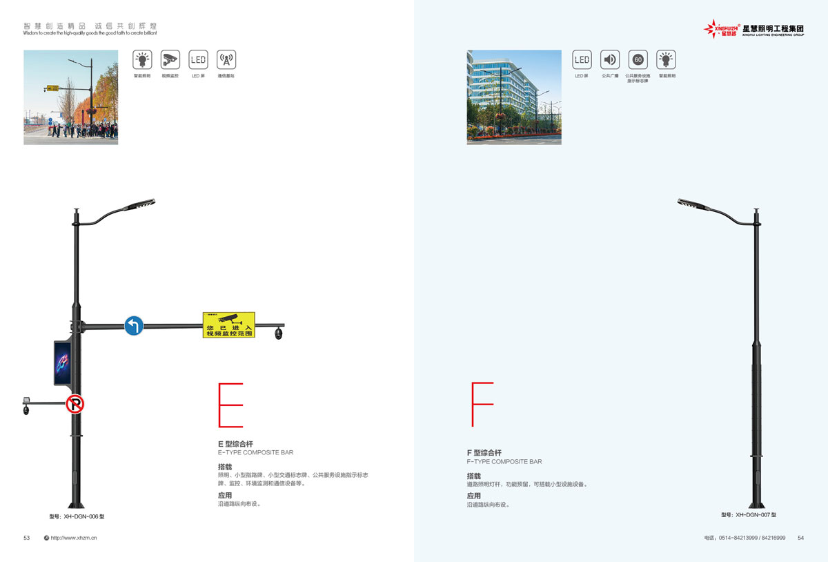 集团公司的产品主要包括:智慧路灯、道路灯、太阳能路灯、高杆灯、LED灯具、电池板组件、单臂灯、双臂灯、组合灯、交通信号灯、电力杆、指示牌、龙门架、景观灯、庭院灯、草坪灯等。公司产品顺利通过国际权威检测机构SGS检测,产品出口美国、苏丹、菲律宾、老挝、越南、坦桑尼亚、阿联酋、以色列等国家。