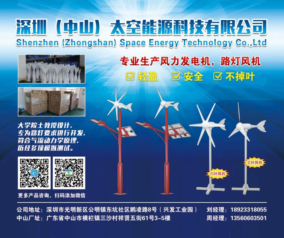 一、太空风力发电机有着新技术新思路,为适应着市场的需求而定制,从新开发一款路灯专用型风机,盘式的电机,微风转动,能起到抗大风,抗飓风,还能自身稳速控速。加厚的钢铁内部结构,全新尼龙纤维材料机壳,轻而耐腐蚀,比传统风机提高了更安全的使用。