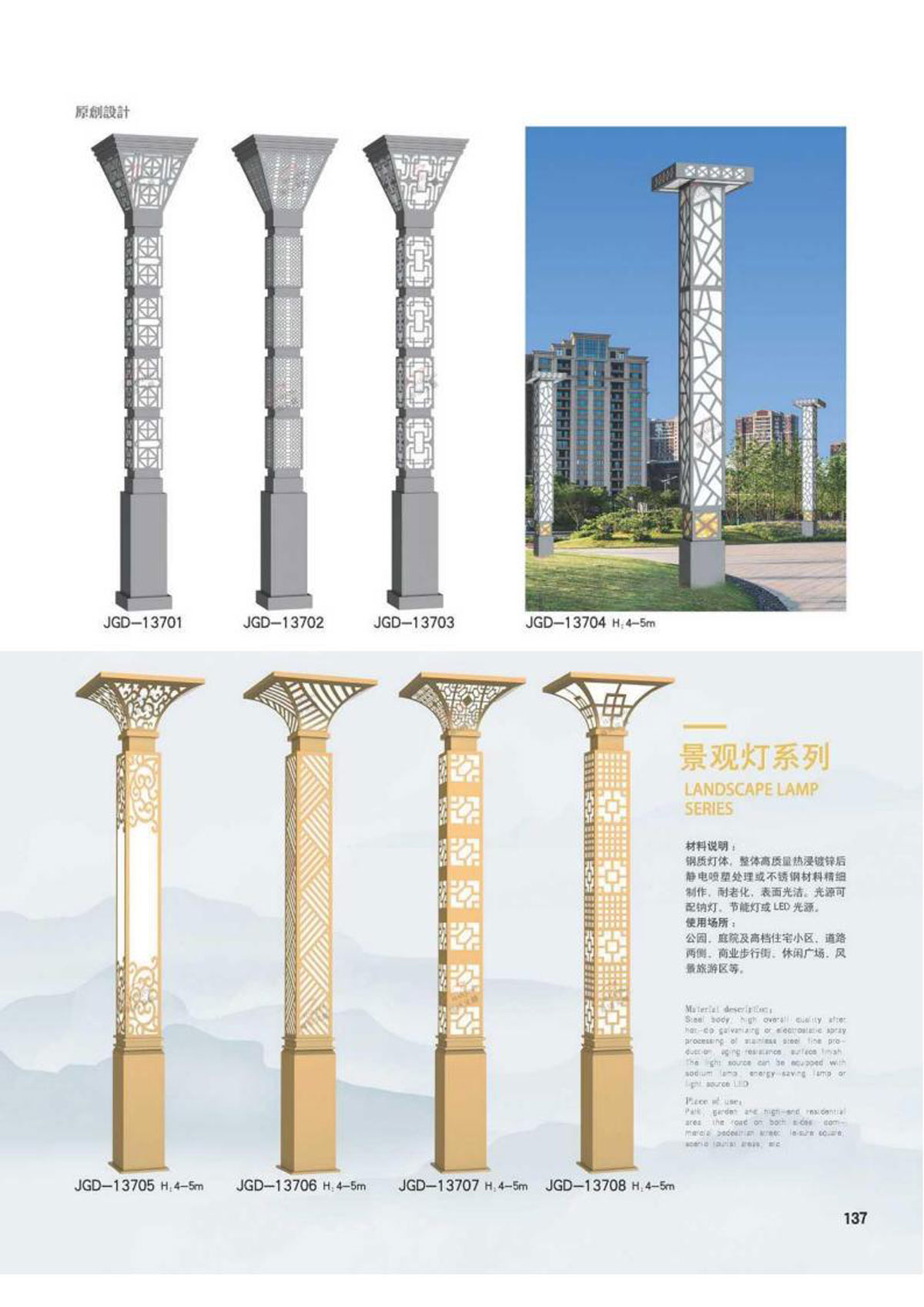 公司主要生产各类道路照明灯杆、高杆、监控杆、异型灯杆、标志杆:同时也致力于标志、机电龙门架、电力塔、信号塔杆、交警灯杆等设计、制造与安装;道路照明使用的太阳能电池板、太阳能电站的电池板,IED灯具,智慧城市等都具备独立设备制造、安装与维护的自主资质和施工能力:市政工程道路浇筑,给排水工程,绿化工程,桥梁垃圾处理站,污水处理站等工程施工太阳能发电站设计、施工及安装。